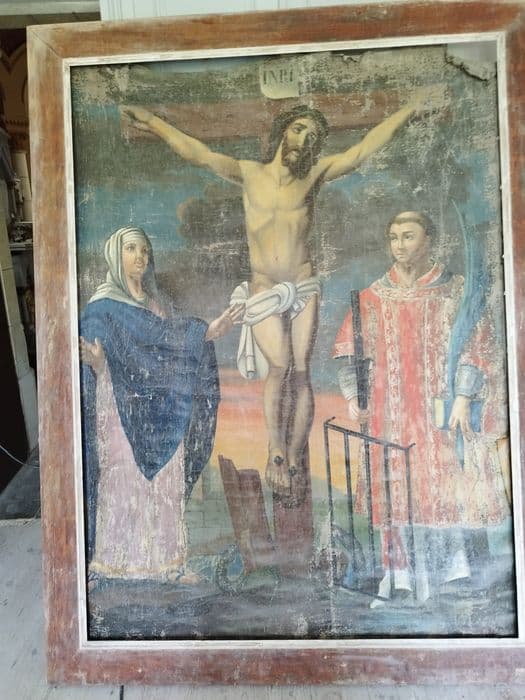 Crucifixion ; Vierge de douleur ; saint Laurent diacre