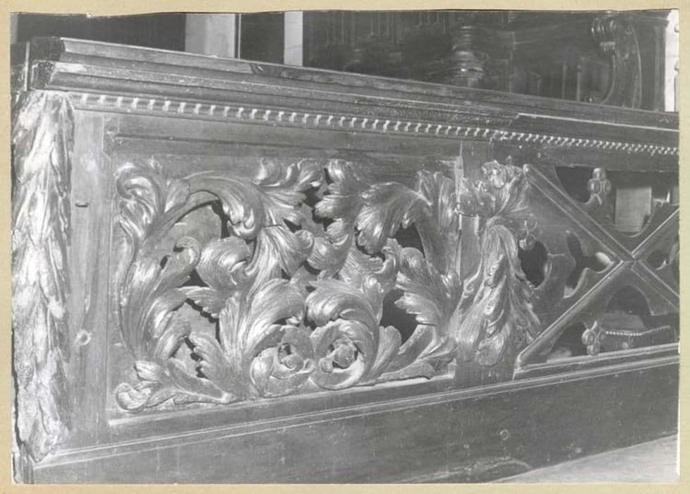 Quatre panneaux sculptés à guirlandes, provenant d'un retable ou d'un autel, montés pour former la clôture.