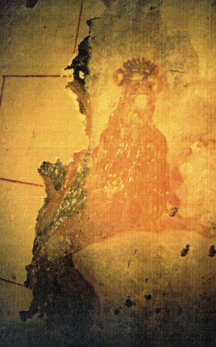 peintures monumentales : Tétramorphe, Armes de France et Saint évêque