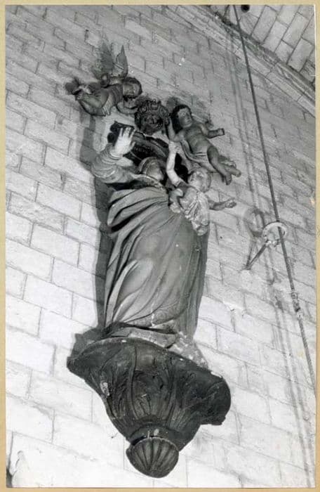 Statue de la Vierge à l'Enfant avec deux angelots porteurs d'une couronne qu'ils déposent sur la tête de la Vierge.