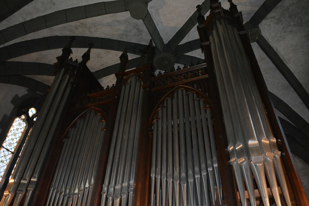 La partie instrumentale est composée de deux claviers (Grand Orgue, 54 notes, 8 jeux ; Récit, 42 notes, 8 jeux) et d’un pédalier (25 notes, 4 jeux). La console est en fenêtre. Deux sommiers diatoniques au Grand Orgue, un sommier de forme trapézoïdale à la Pédale. La transmission est mécanique.
