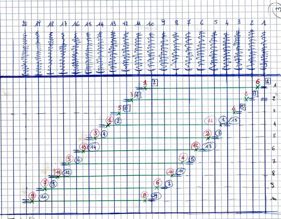 Mule avec cordes et courroies (arbre de renvoi à trois poulies).