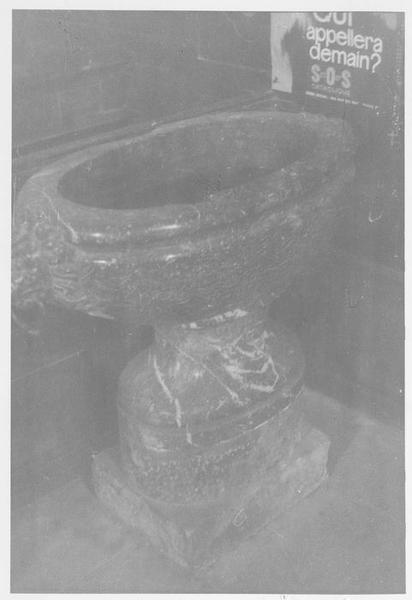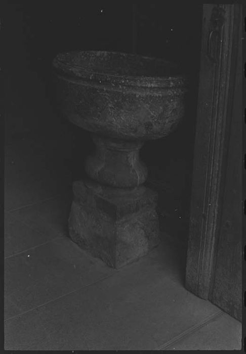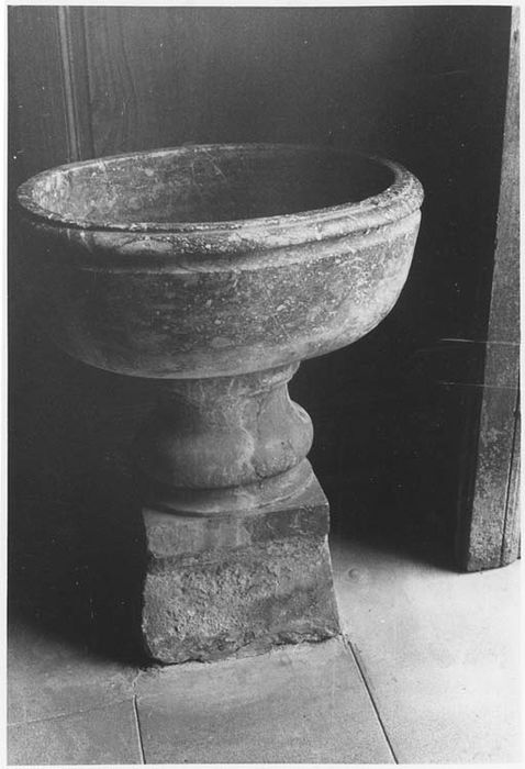 Le bénitier est placé dans l'église vers 1700 par le curé Vincent Constable à ses frais.