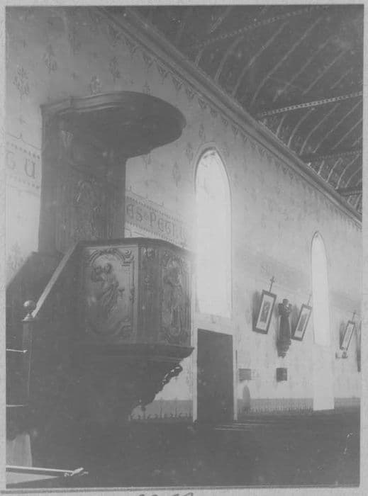 Cette chaire était autrefois dorée. Le dossier est ornée de bas-reliefs.