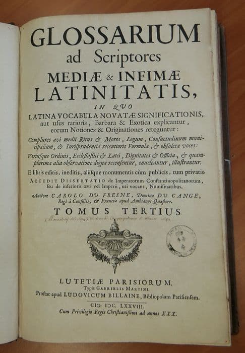 livre : Glossarium ad scriptores mediae et infimae latinatatis tres in tomo digestum de Charles du Fresne