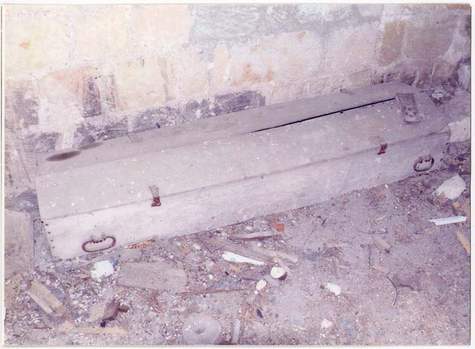 Cercueil pour les indigents en bois de bouleau ou de peuplier. De forme trapézoïdale et allongée, il est constitué d'une caisse composée d'un fond (deux planches), de quatre côtés assemblés par des clous, d'un couvercle formé de deux planches, fixées par des charnières et assurant la fermeture complète. Sur les côtés, quatre poignées en fer forgé sont maintenues dans des anneaux.