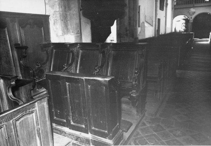 choeur, à l'entrée ; maître-autel, à côté (agenouilloirs)