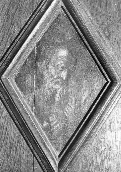 Oeuvre anciennement datée du 18e siècle. Vers 1956, la porte du dosseret, qui était ornée d'un tableau en camaïeu, a disparu. Vers 1960, la peinture en chêne clair, exécutée en 1781 a été décapée.