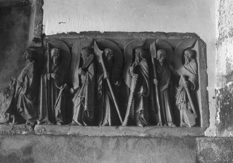 retable de la Crucifixion, statues : Christ en croix, La Vierge et saint Jean, Deux saintes femmes et les douze Apôtres