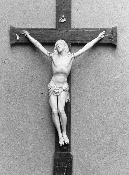 Le Christ est en ivoire sous badigeon, et la croix est en bois peint.