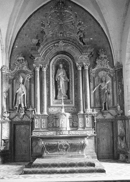 POP | Plateforme ouverte du patrimoinemaître-autel, gradin d'autel, tabernacle, retable, portes de la sacristie, niches, 2 statues : Saint Sulpice, Saint Jean-Baptiste, 2 reliquaires