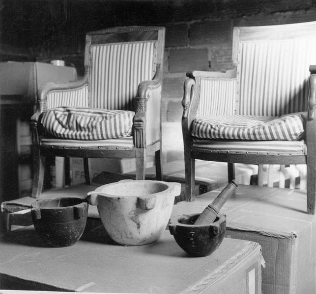 pot à pharmacie (urne), 3 mortiers, pilon