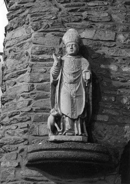 groupe sculpté : Saint Evêque (ou saint Abbé) accompagné d'un boeuf