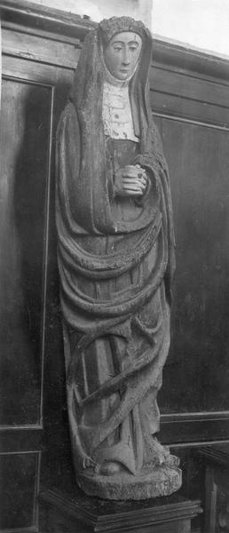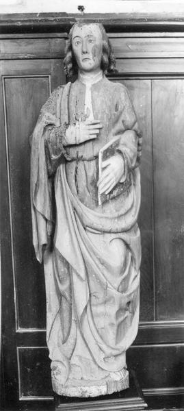 Ces statues proviennent d'une poutre de gloire. Elles ont anciennement été datées du 16e siècle.