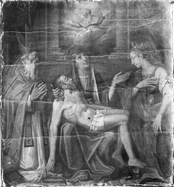 POP | Plateforme ouverte du patrimoinetableau : Vierge de Pitié entre saint Nicolas et sainte Catherine d'Alexandrie