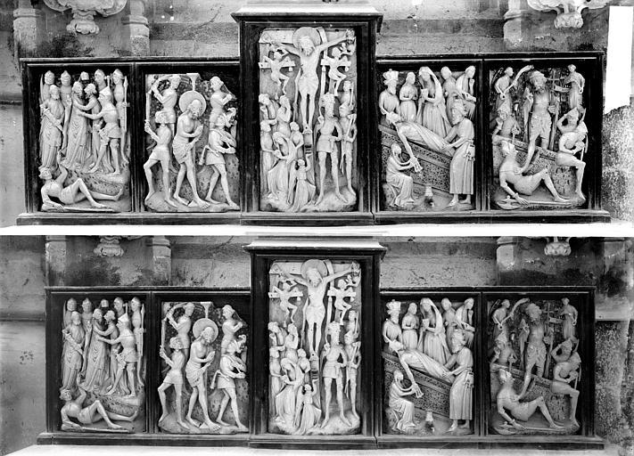 Ce retable présente cinq scènes de la Passion : le Baiser de Judas, la Flagellation, le Christ entre les deux Larrons, la Mise au tombeau, la Résurrection.