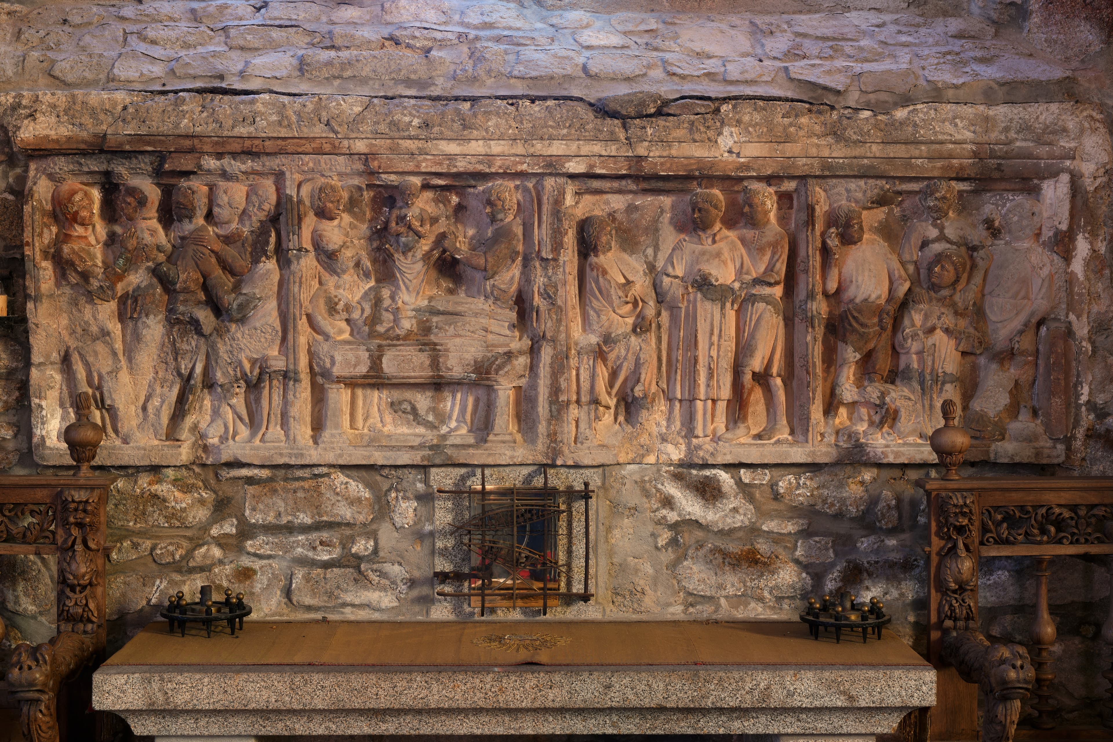 Bas-relief formant retable.