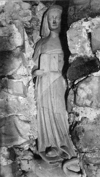groupe sculpté : Sainte tenant un livre (sainte Marthe ou sainte Marguerite), avec un dragon à ses pieds