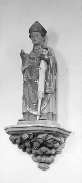 Statue en pierre polychromée sous un repeint. Le revers n'est pas sculpté.