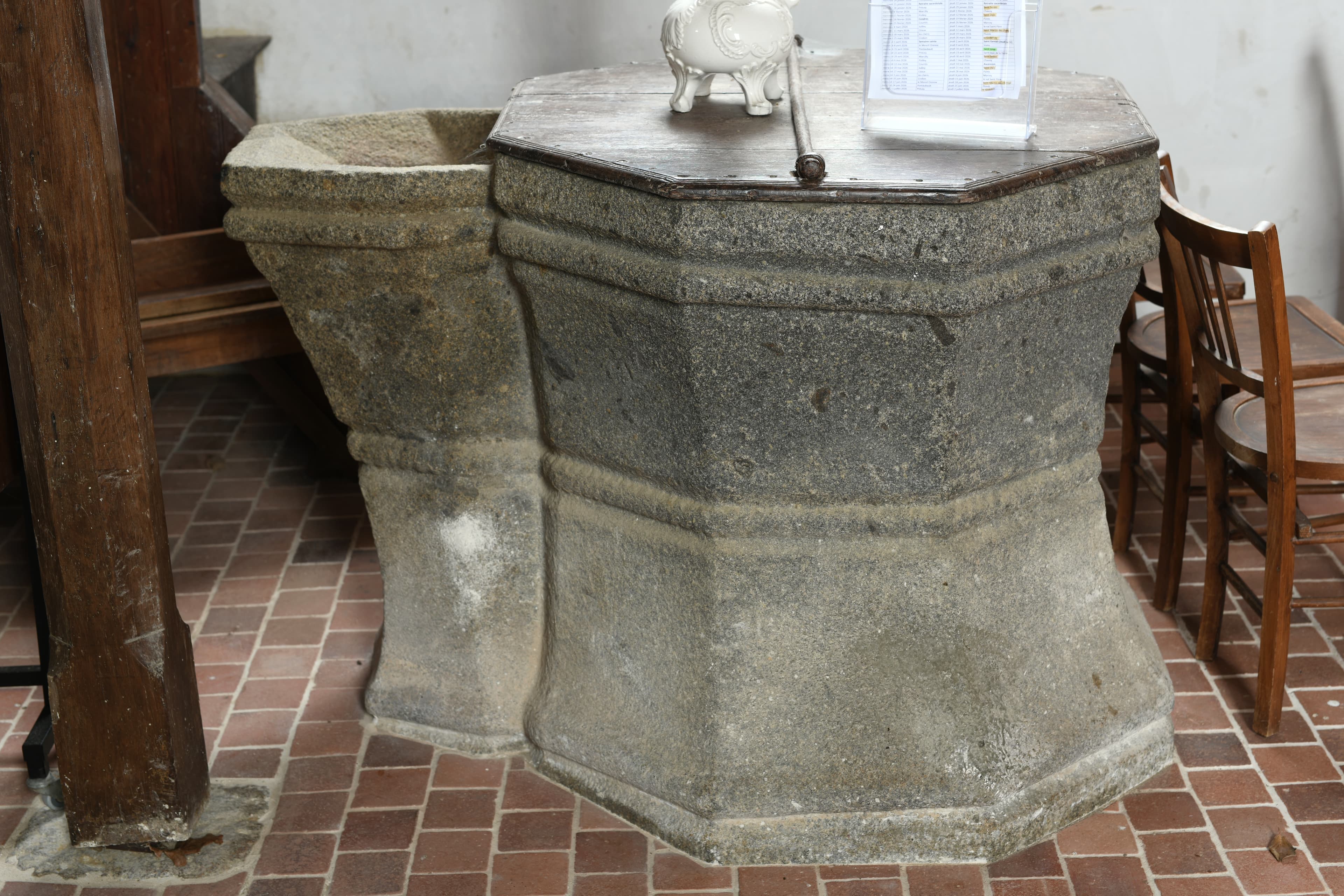 Ces fonts baptismaux sont composés de deux cuves accolées, l'une octogonale, l'autre plus petite et hexagonale. Elles sont etranglées au milieu.