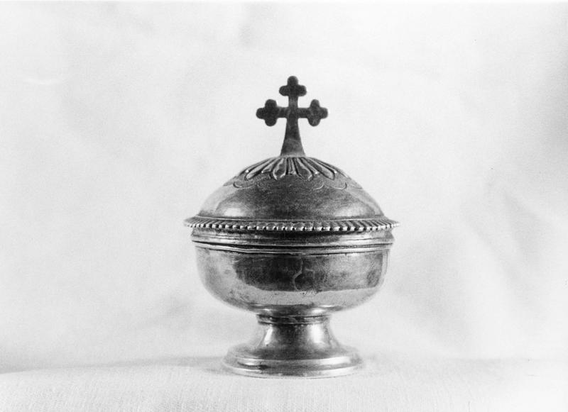 Petit ciboire à piédouche, exécuté entre 1751 et 1770 par Jean-François II Jobard, orfèvre de Valognes.