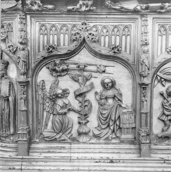 Ce devant d'autel est constitué de cinq panneaux orné de bas-reliefs représentant le cycle de la Nativité.
