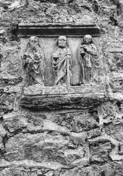 Fragment d'un retable aux douze apôtres, dont trois subsistent : Saint Jean, Saint Jacques, et Saint Jude.