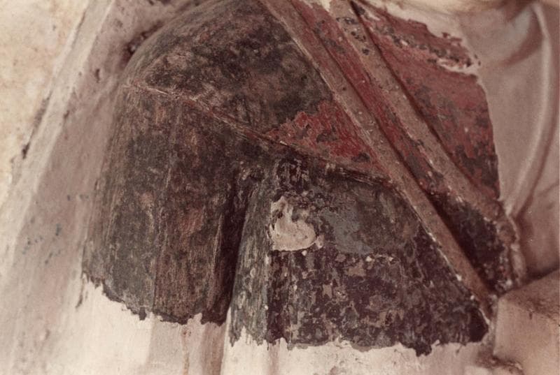 calcaire : décor en haut-relief, polychrome