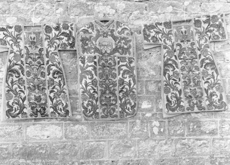chasuble ; dalmatique (2) ; étole de clerc (2) ; manipule (3)