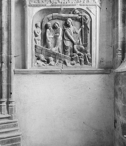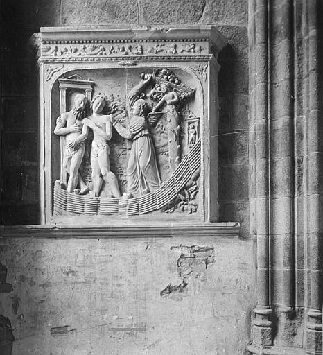 Ces bas-reliefs proviennent de la clôture du choeur. Ils représentent les quatre Evangélistes et leurs attributs, la Descente du Christ aux enfers, et Adam et Eve chassés du paradis terrestre.