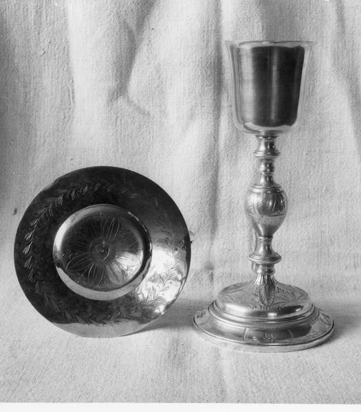 Le calice est du début du 19e siècle, et la patène a été exécutée entre 1819 et 1838.