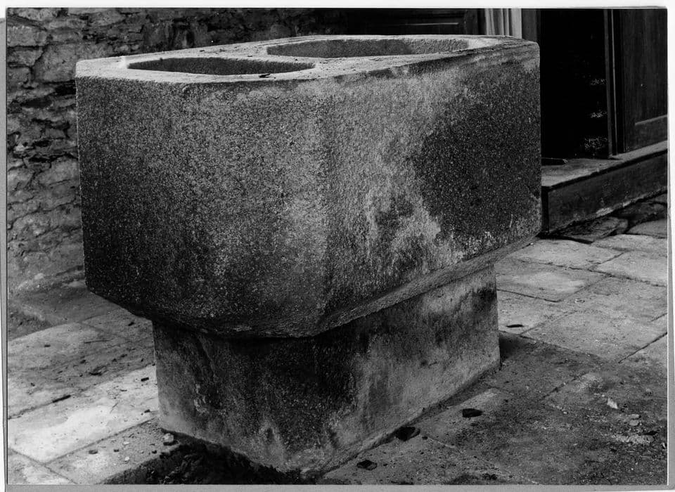 Cuve de forme rectangulaire à pans coupés, creusée de deux bassins.