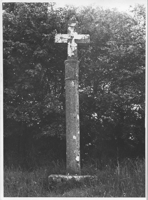 Croix de chemin avec dé, fût monolithe, chapiteau et croisillon.