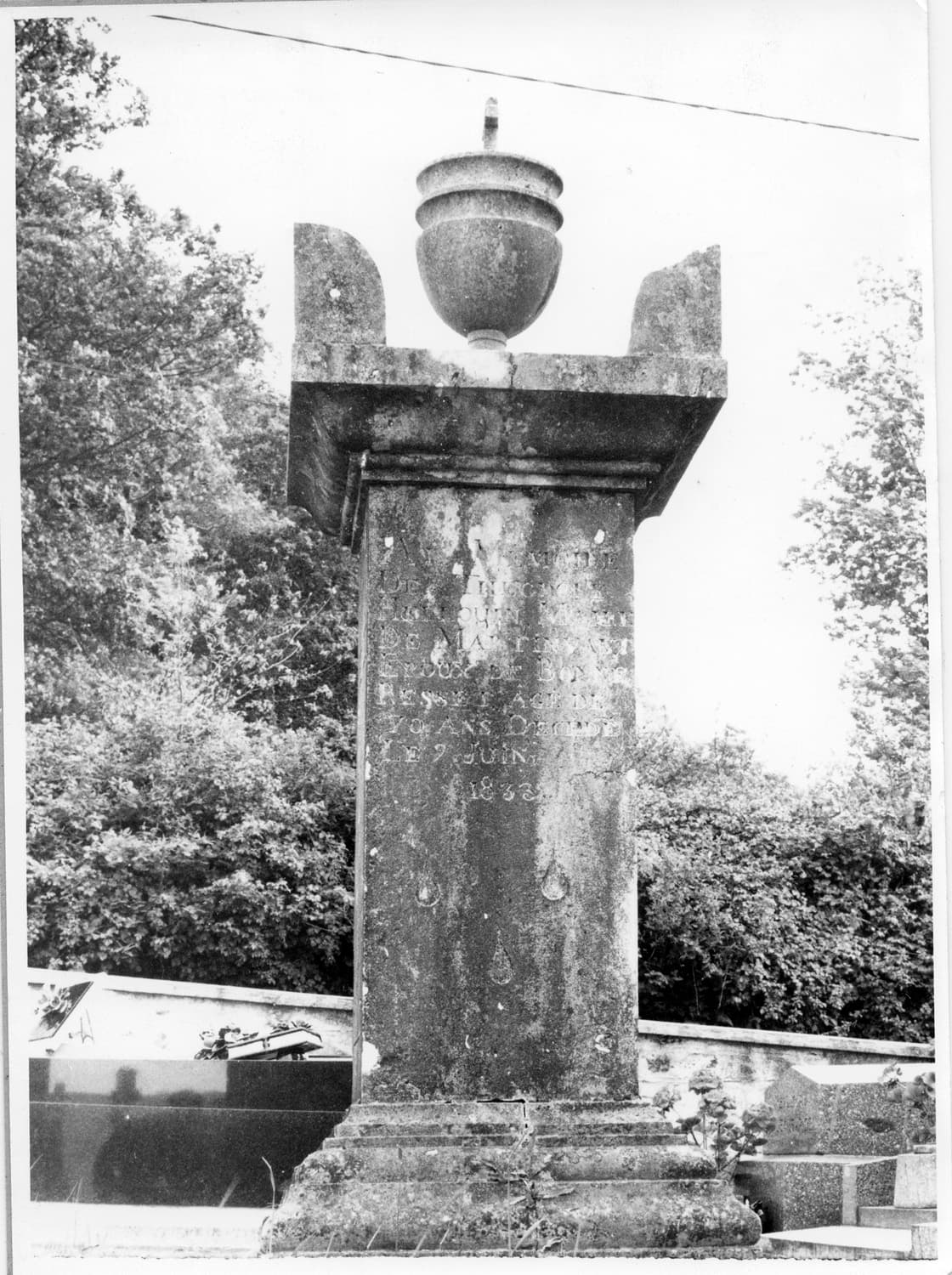 Tombeau en forme de cippe situé dans la section sud-est du cimetière de l'église.