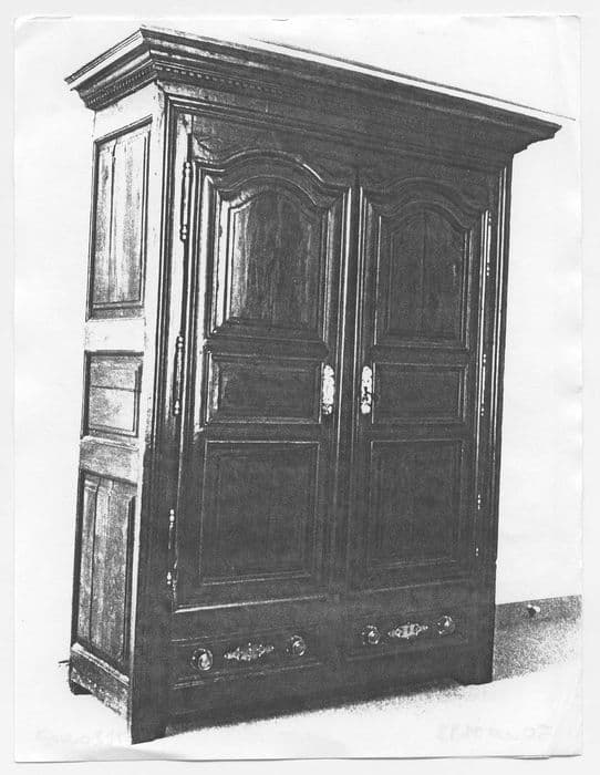 Armoire à linge normande en bois de chêne mouluré avec garnitures en fer et en laiton.