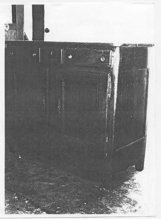 Buffet bas en bois de chêne mouluré avec garnitures en laiton.