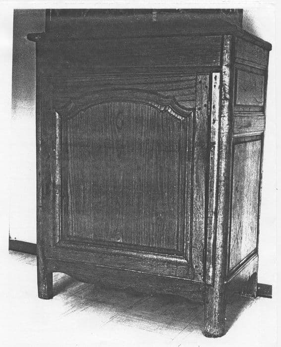 Petit cabinet à une porte en bois de chêne mouluré avec garnitures en fer.