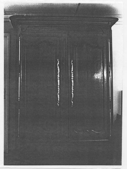 Armoire à linge normande en bois de chêne sculpté et mouluré avec garnitures en laiton.