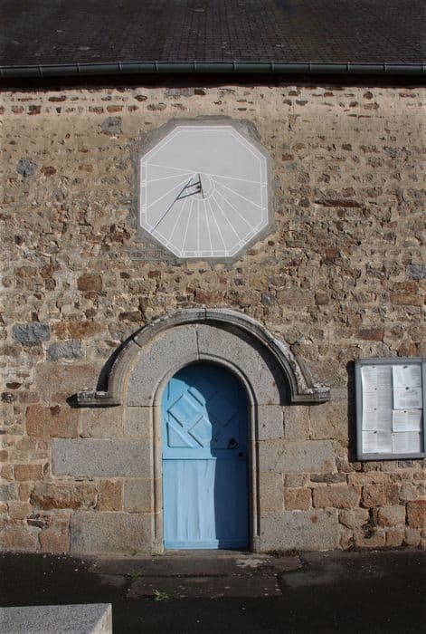 Le cadran solaire tracé dans l'enduit au-dessus du portail occidental et son style en fer.