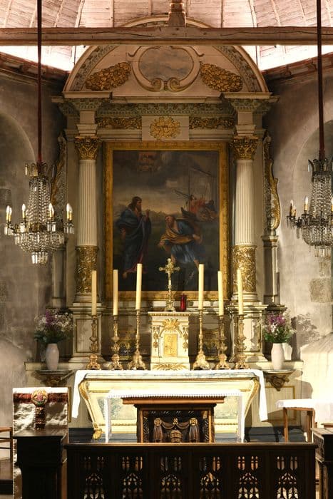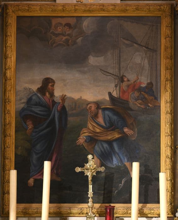 retable du maître-autel, tableau : Christ marchant sur les eaux à la rencontre de saint Pierre, et croix d'autel