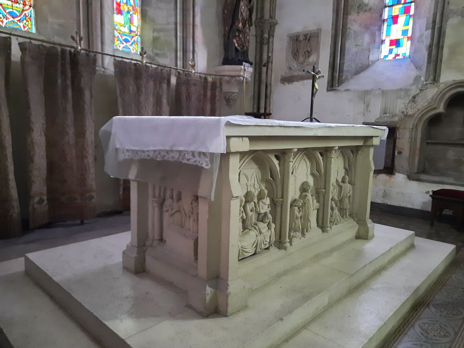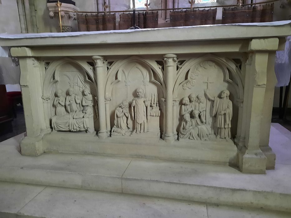 Autel constitué d'un ancien cénotaphe du bienheureux Thomas Hélye, déplacé dans le choeur. Des bas-reliefs sur la vie du bienheureux ornent les quatre côtés.