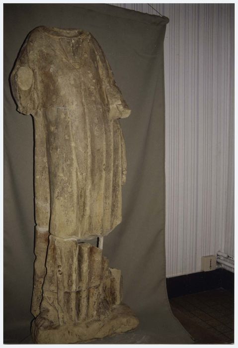 Statue brisée en quatre fragments. Traces de polychromie.