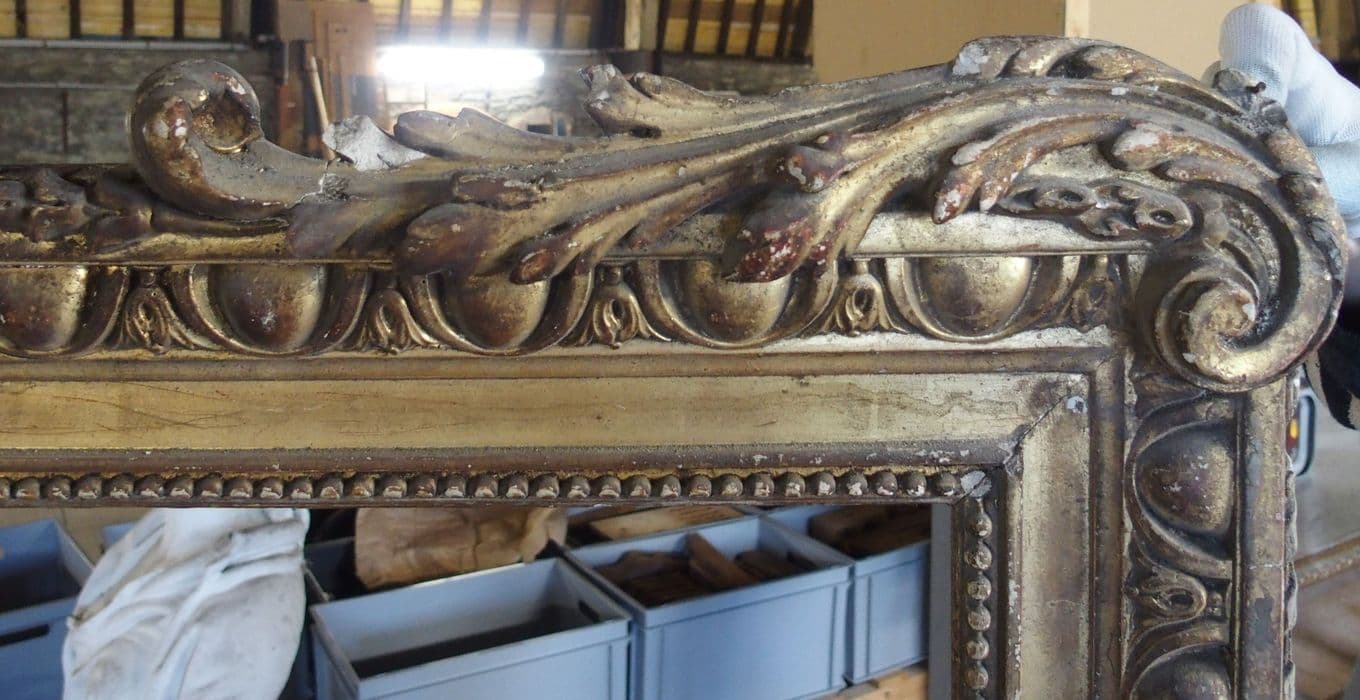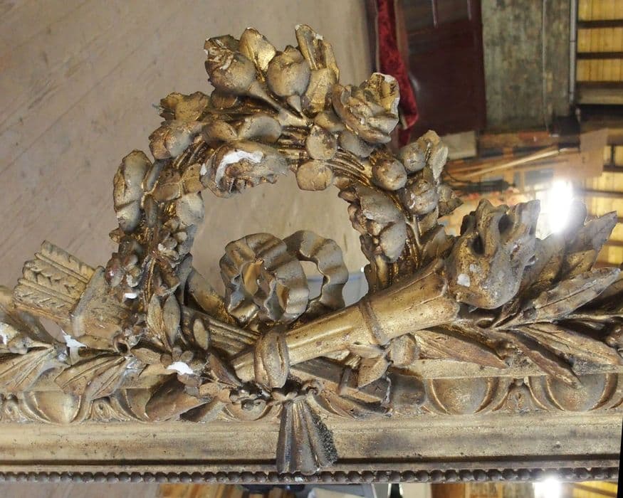 Huit miroirs pour les loges à salons avec cadres en bois doré ou en bois recouvert de velours rouge. Deux miroirs pour le foyer des artistes, avec encadrement en sapin doré et sculpté. Sculptures du fronton représentant une couronne de lauriers, un carquois et ses flèches, une torche (déposés dans le grenier).