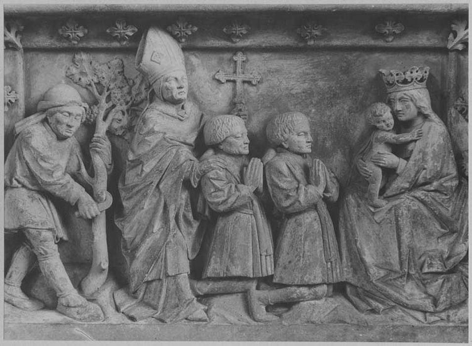 POP | Plateforme ouverte du patrimoinebas-relief ex-voto : Vierge de Pitié et deux donateurs présentés par saint Jean et Saint Pierre