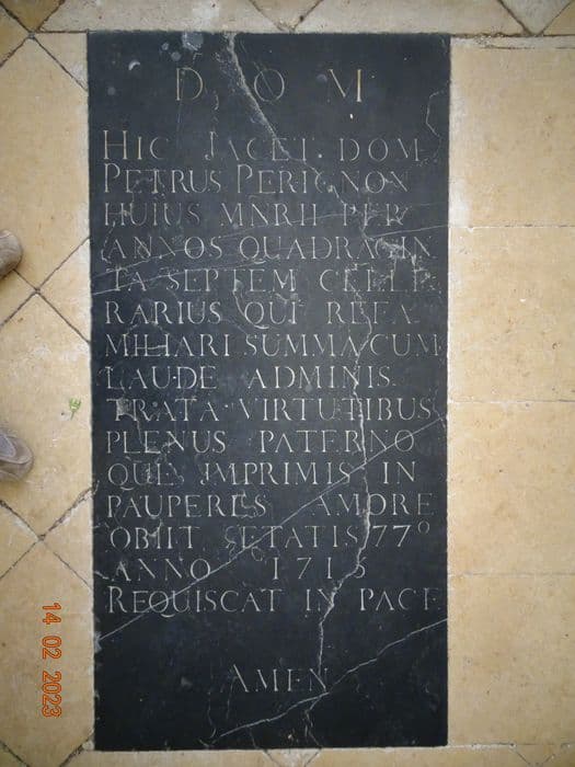 dalle funéraire de Dom Pierre Pérignon, cellérier de l'abbaye d'Hautvillers