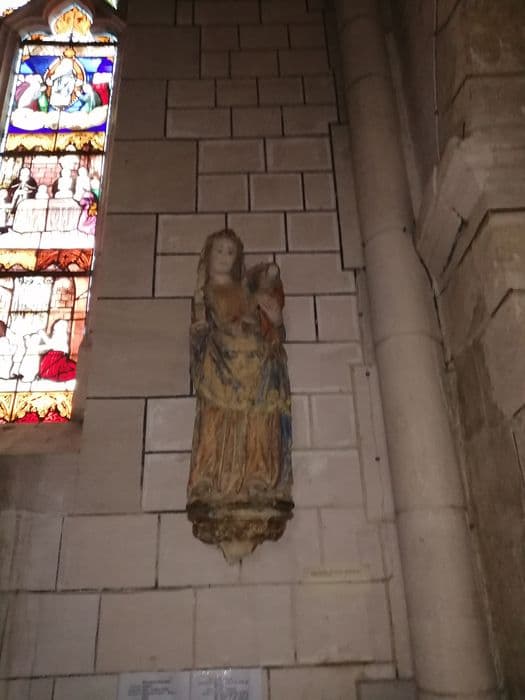 Tête de l'enfant brisée. L'enfant est porté sur le bras gauche de la Vierge, qui tient un livre de la main droite.