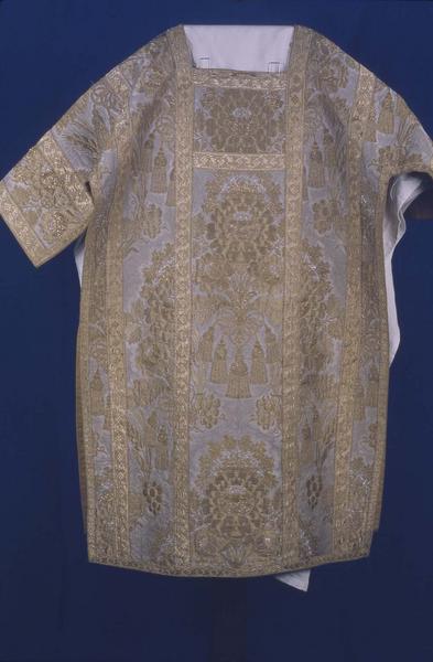 Ornement de troisième ordre, vingt-et-une pièces, époque Charles X. On a aussi dépareillé cet ornement ; on en a retranché quatre tuniques et quatre chapes, pour faire d'autres ornements. Il se compose aujourd'hui (1861) : d'une chasuble, de huit tuniques et de quatre chapes. Le tout en drap d'argent broché d'or, avec galons fins fleurdelysés.