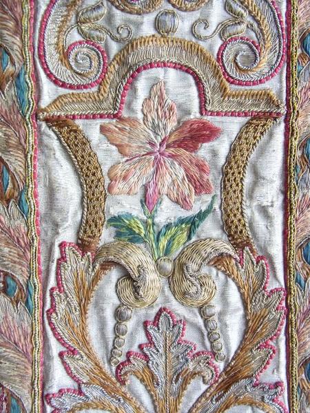 Ornement brodé : chape, chasuble, dalmatique et tunique, or et soie.