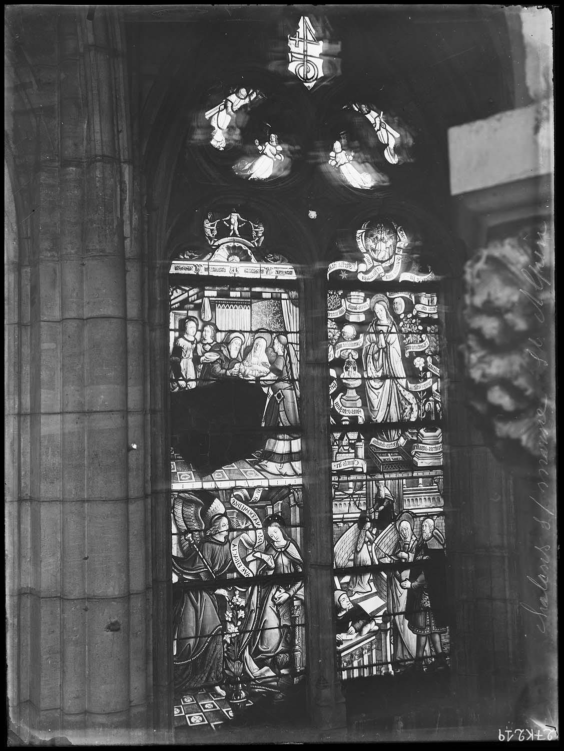 verrière : Scènes de la vie et litanies de la Vierge