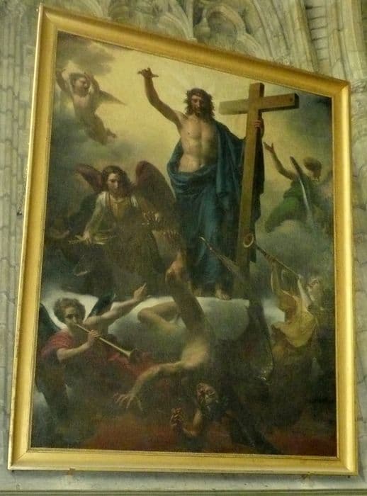 tableau : A la venue du Messie le génie du mal est précipité dans l'abîme ou La Venue du Messie (et son cadre)